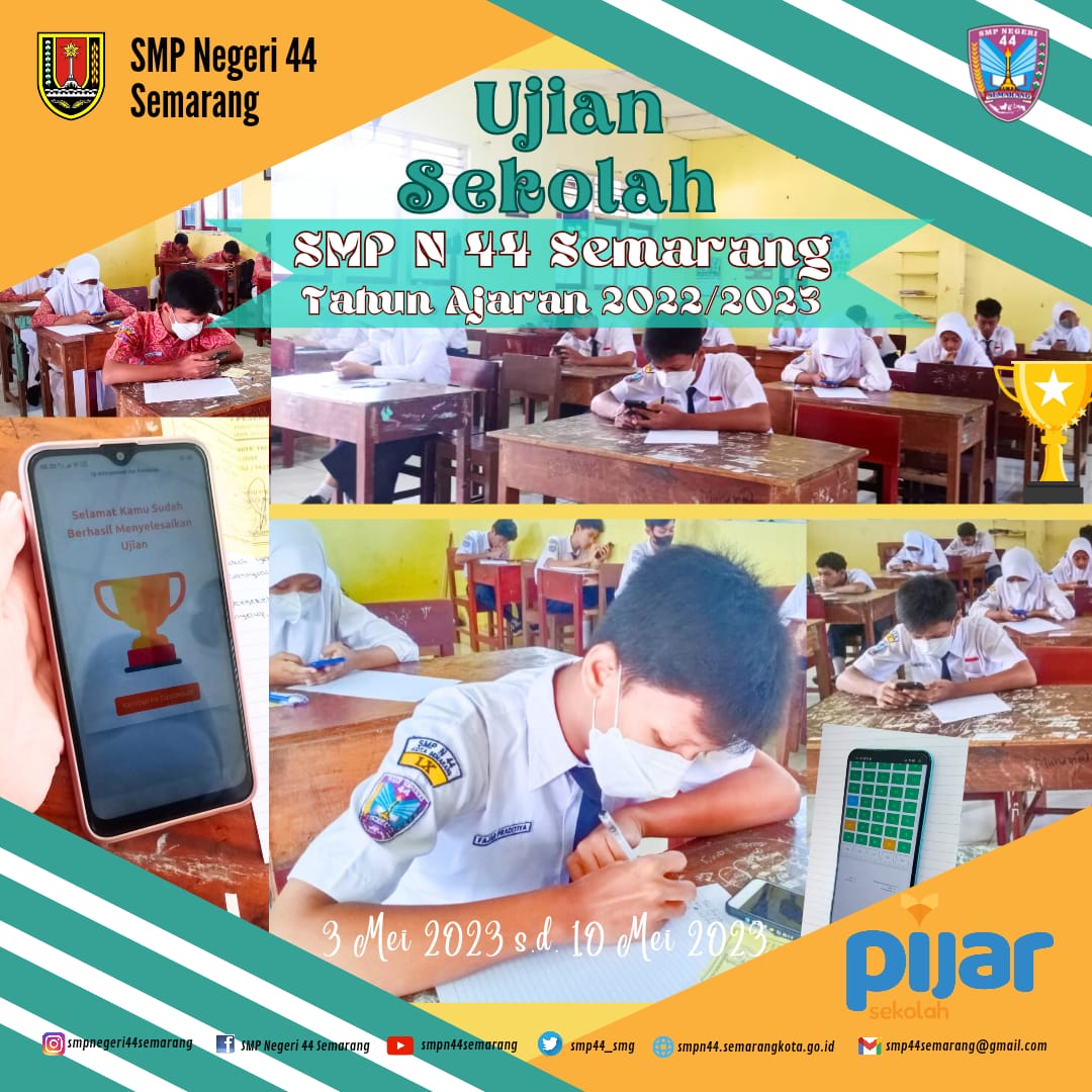 Ujian Sekolah SMP Negeri 44 Semarang Tahun Ajaran 2022/2023 dilaksanakan tanggal 3 Mei s.d 10 Mei 2023 menggunakan Pijar.